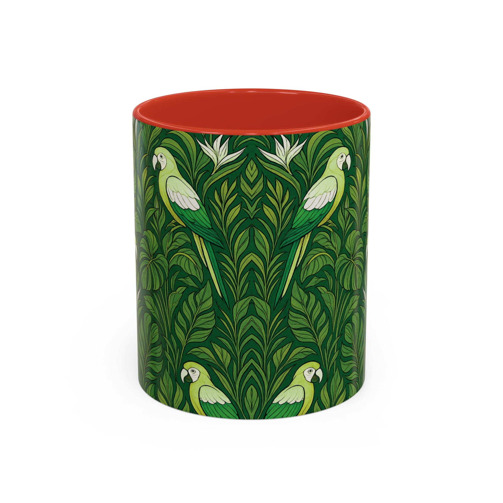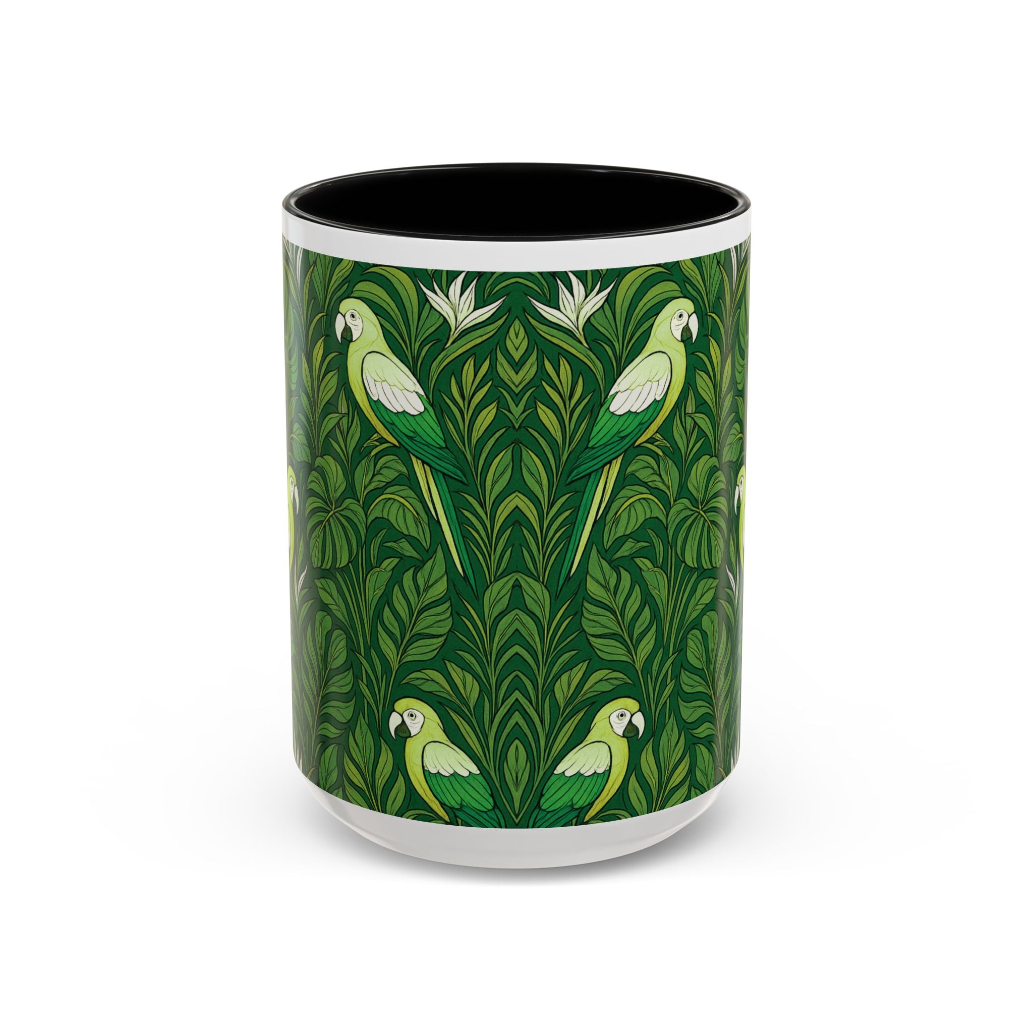 Meet your next favorite morning companion, the accented ceramic mug. This mug brings the perfect blend of style and functionality to elevate your coffee or tea ritual. Features our exclusive Parrot Family design giving off tropical vibes.