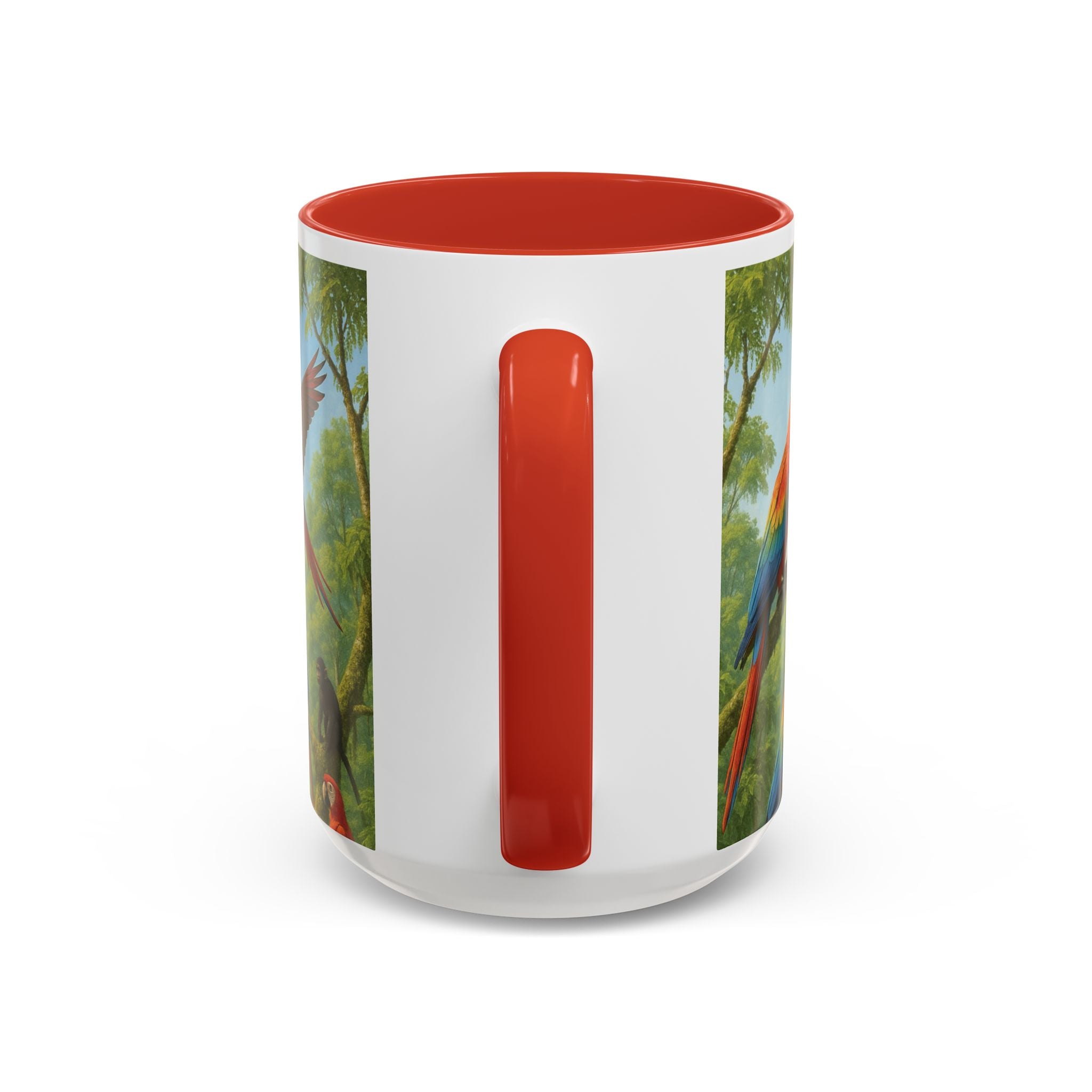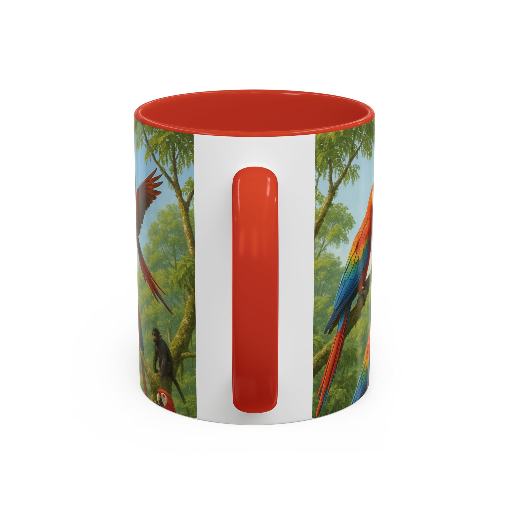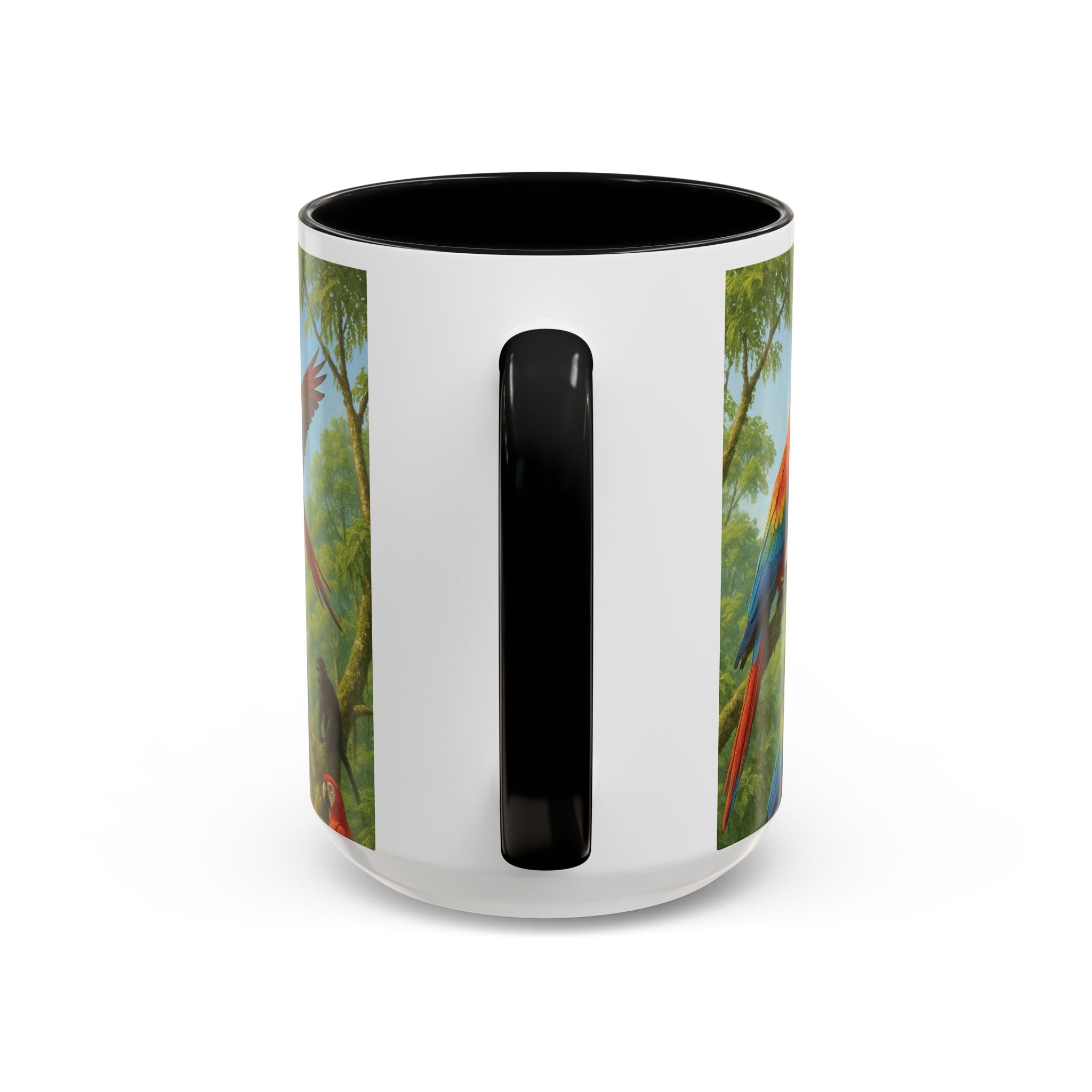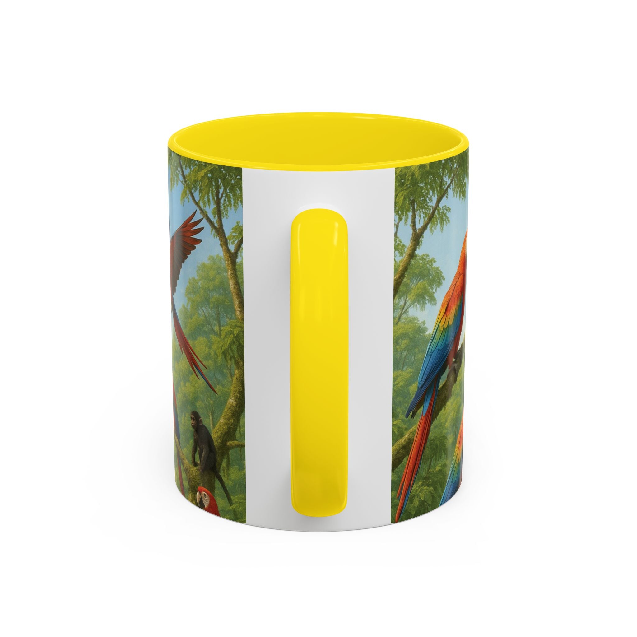 Meet your next favorite morning companion, the accented ceramic mug. This mug brings the perfect blend of style and functionality to elevate your coffee or tea ritual. Features our exclusive UFO and Macaws design giving off tropical mystery vibes.