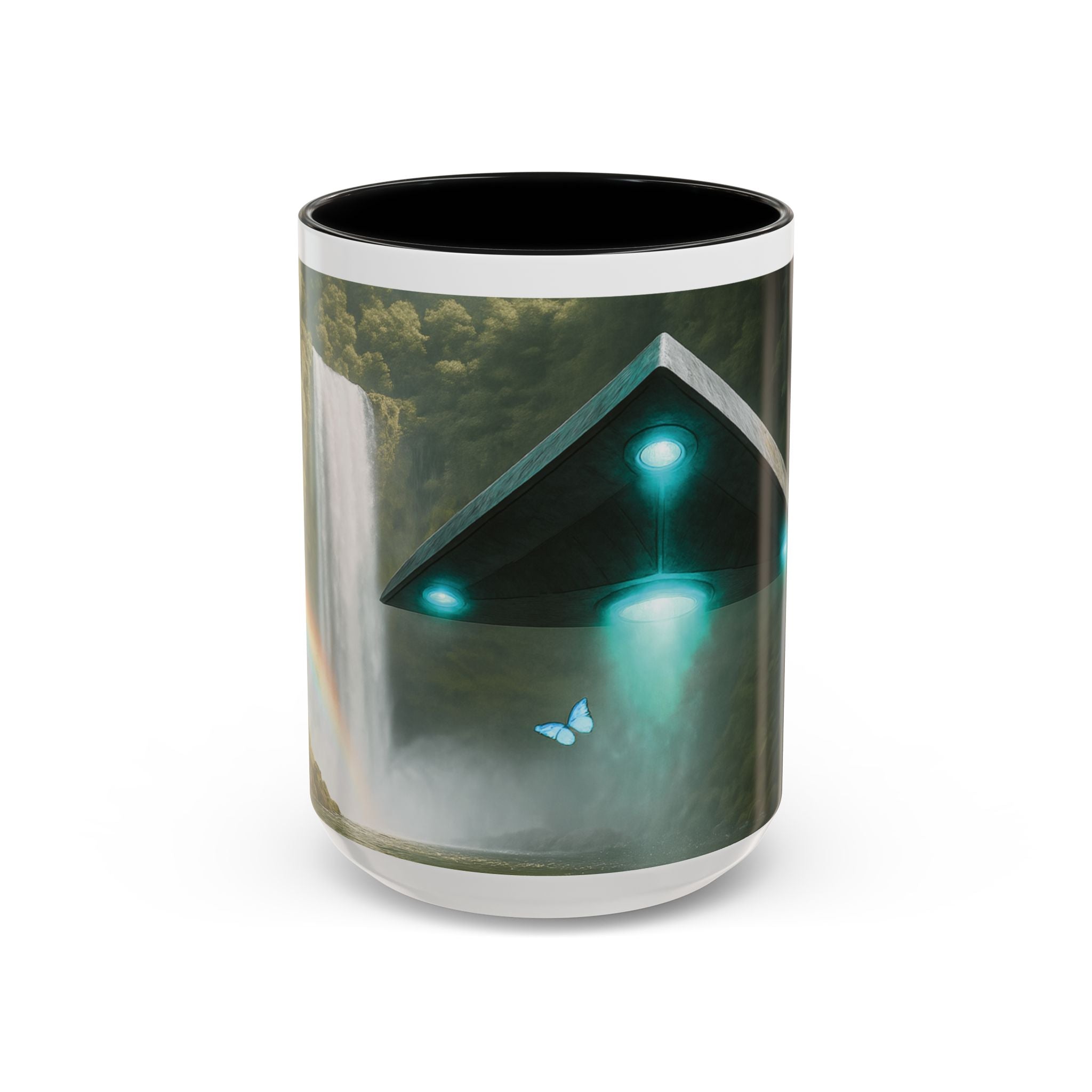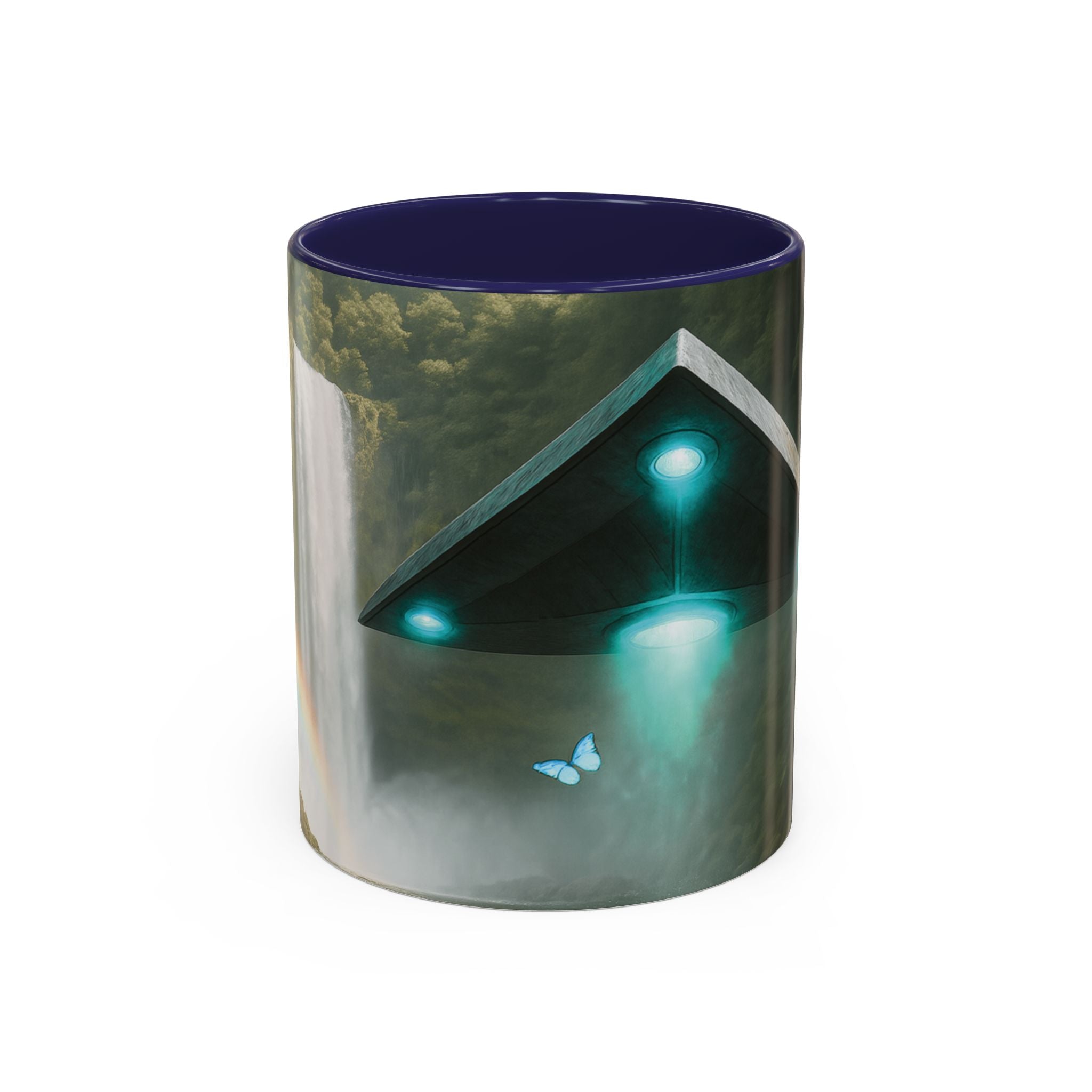 Meet your next favorite morning companion, the accented ceramic mug. This mug brings the perfect blend of style and functionality to elevate your coffee or tea ritual. Features our exclusive UFO and Waterfall design giving off tropical mystery vibes.