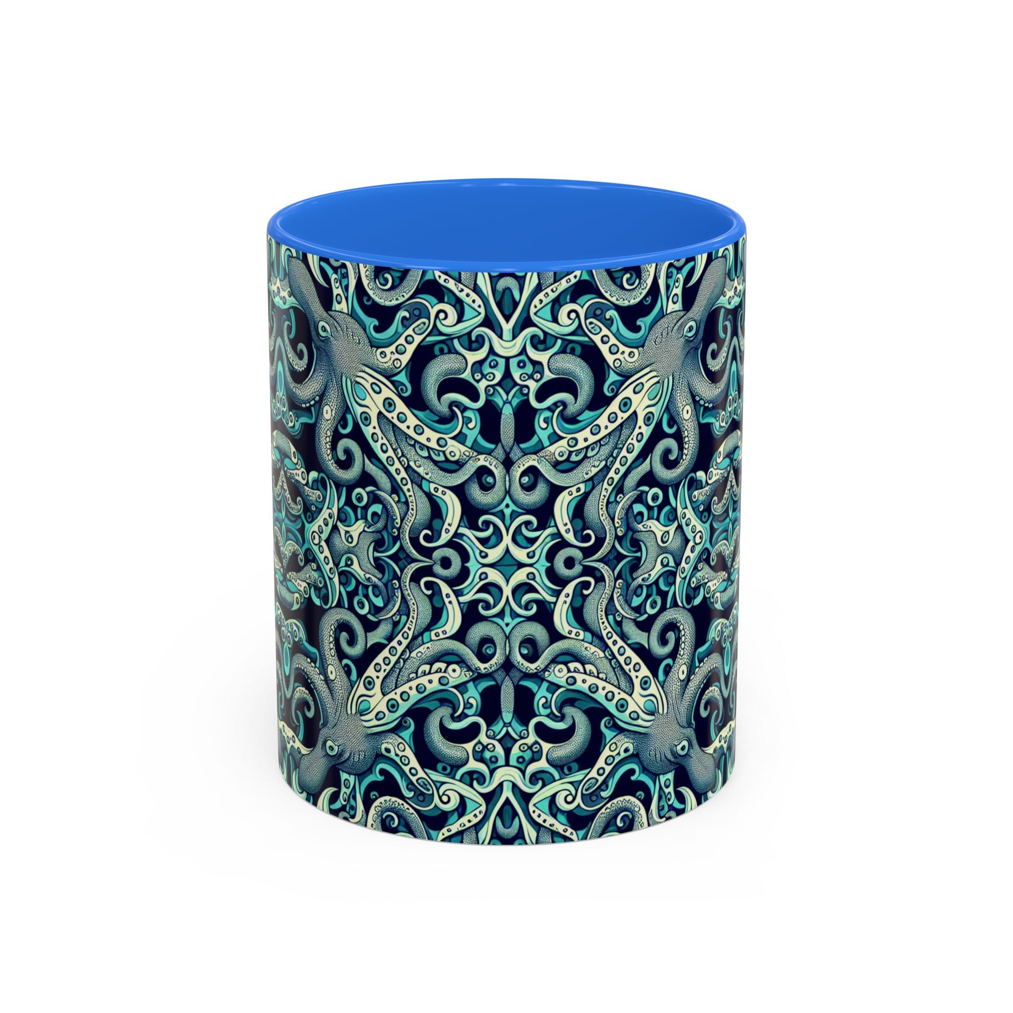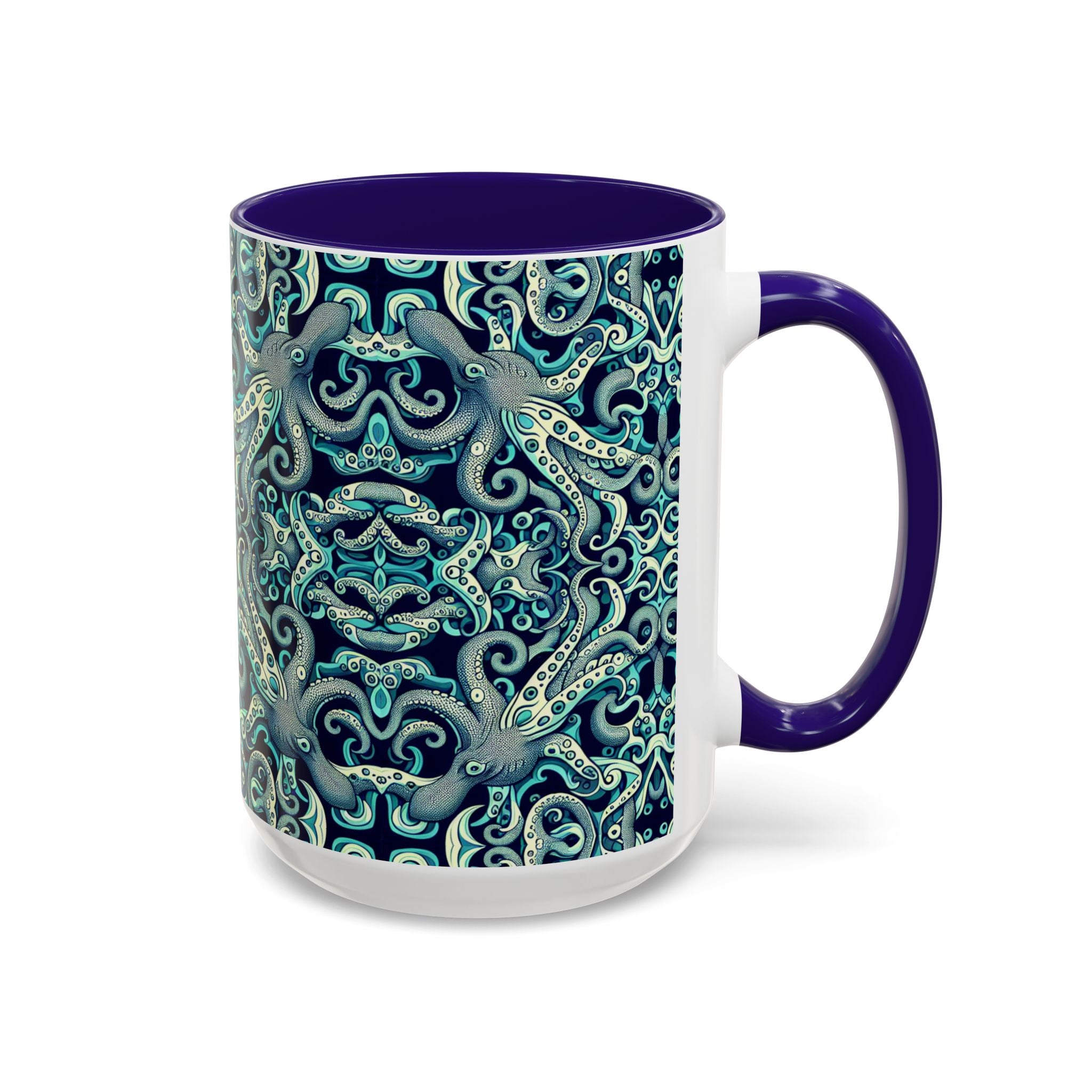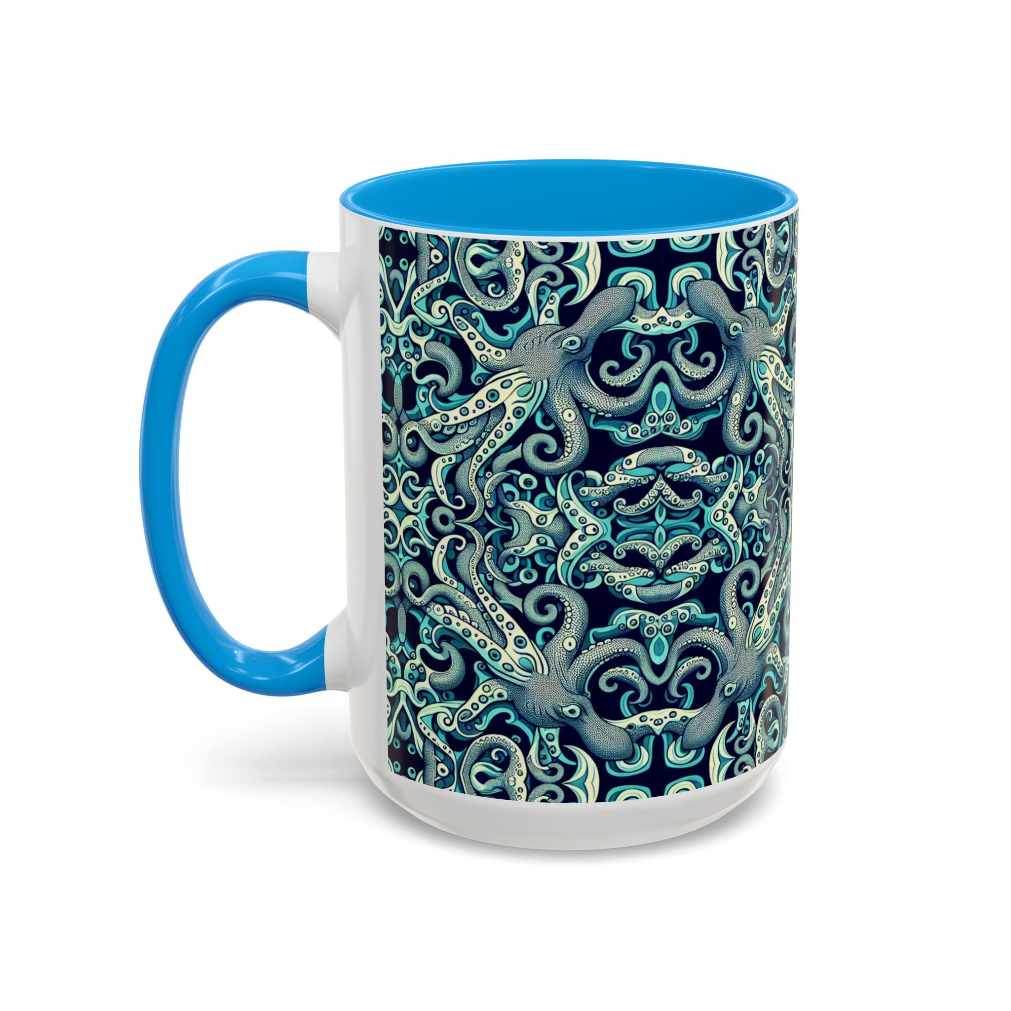 Brighten up your daily routine with our colorful mug featuring an original kaleidoscope twisted aqua octopus pattern! Each is designed to bring a splash of joy to your mornings, whether you're enjoying a warm cup of coffee or a cozy tea. The vibrant, tropical pattern creates a vibrant atmosphere, making every sip a delight. Perfect for anyone who loves unique, artistic drinkware, these mugs are ideal gifts for friends and family. Celebrate occasions like birthdays, holidays, or housewarmings with a personalized touch! Featuring a comfortable grip and two sizes to choose from, these mugs are a lovely addition to any kitchen or workspace.