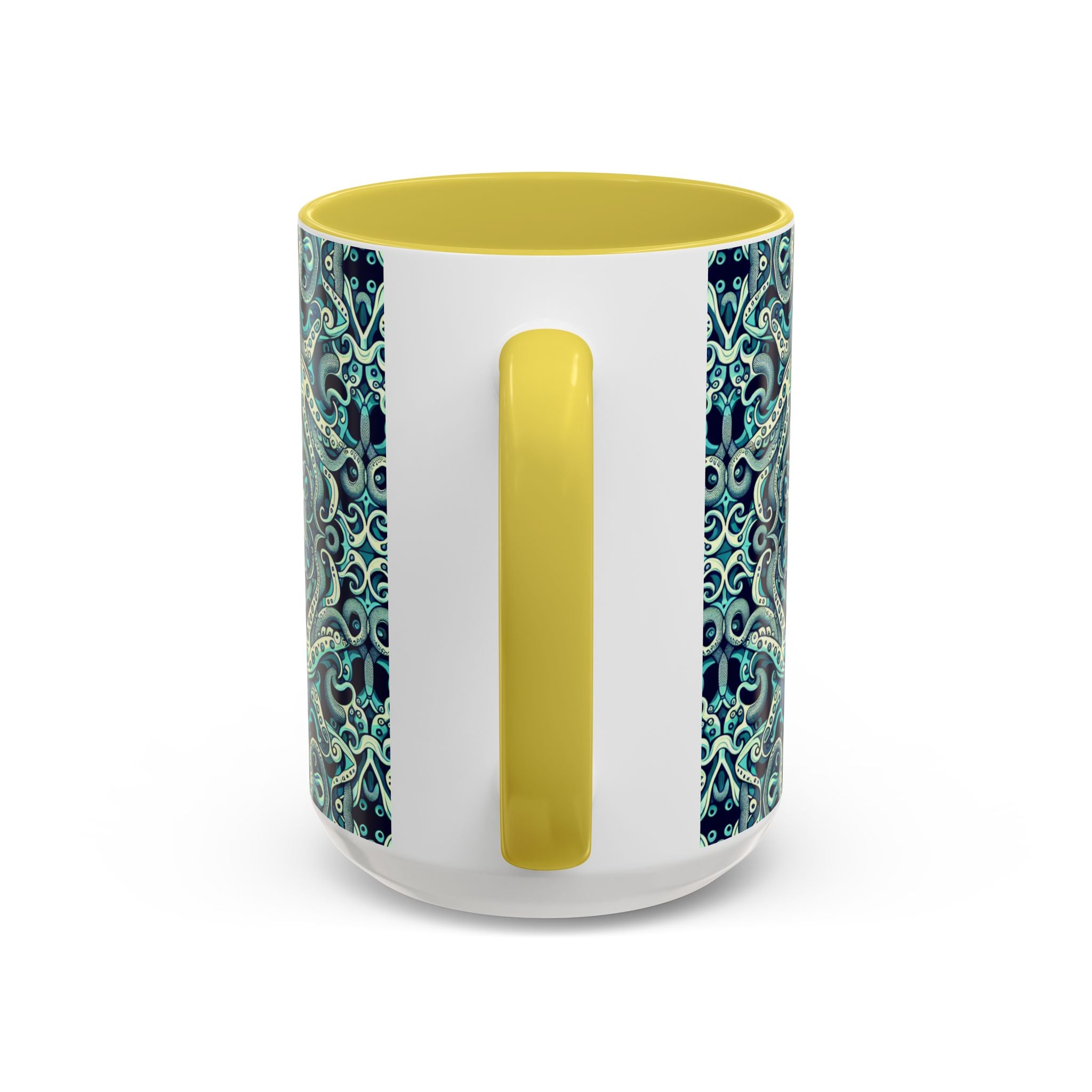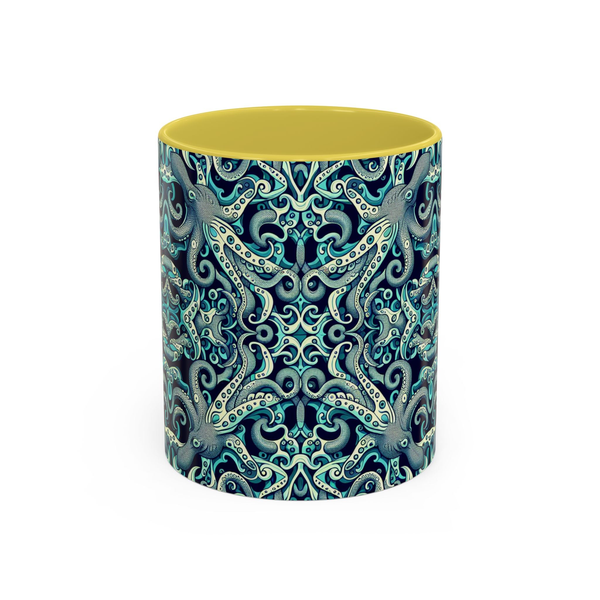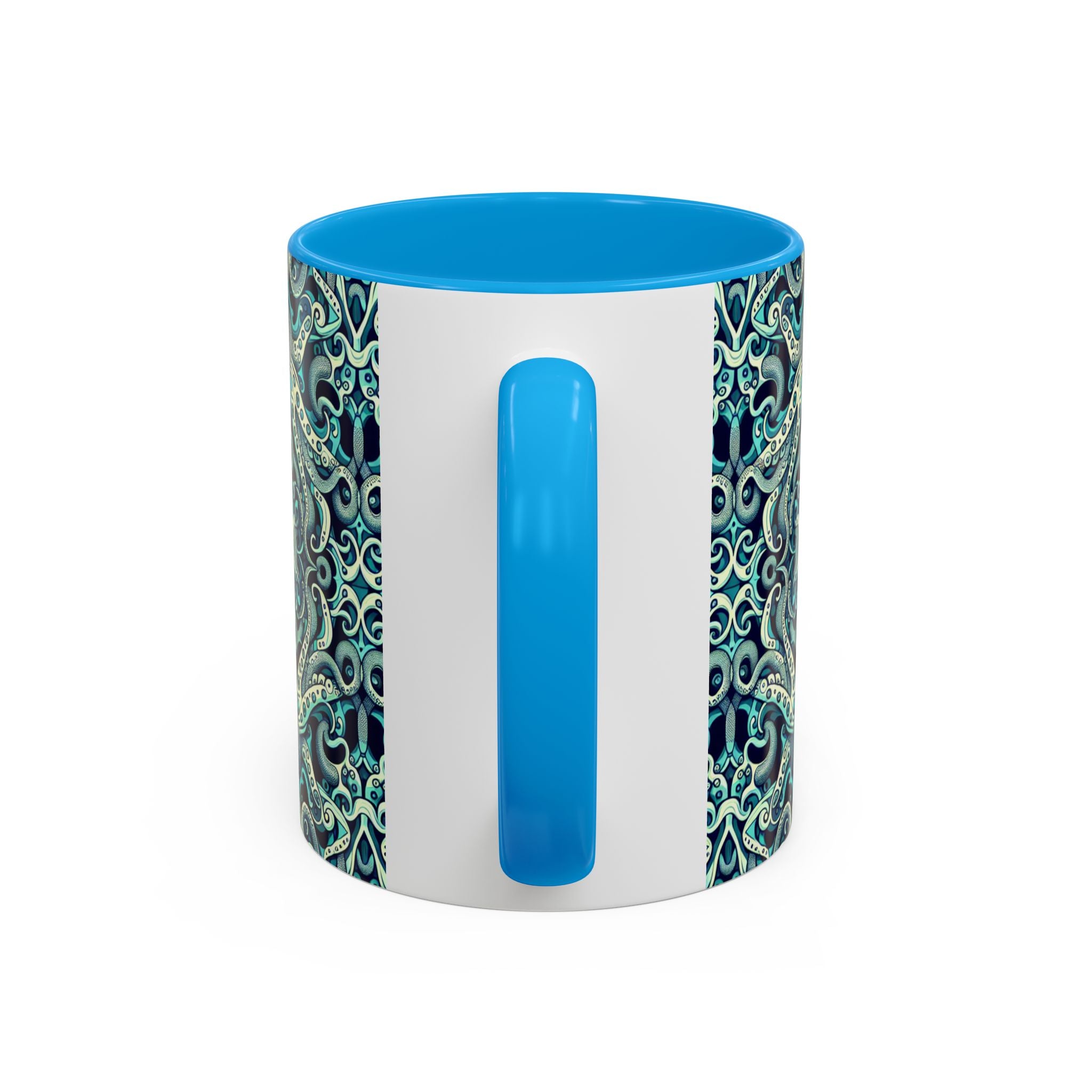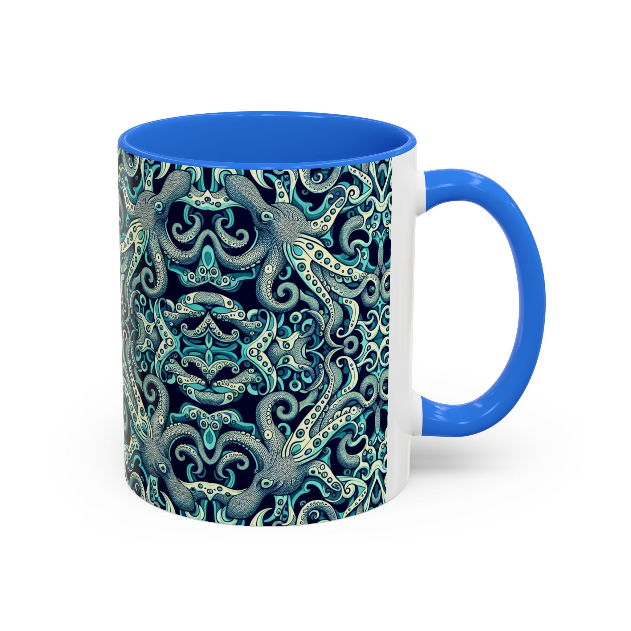 Brighten up your daily routine with our colorful mug featuring an original kaleidoscope twisted aqua octopus pattern! Each is designed to bring a splash of joy to your mornings, whether you're enjoying a warm cup of coffee or a cozy tea. The vibrant, tropical pattern creates a vibrant atmosphere, making every sip a delight. Perfect for anyone who loves unique, artistic drinkware, these mugs are ideal gifts for friends and family. Celebrate occasions like birthdays, holidays, or housewarmings with a personalized touch! Featuring a comfortable grip and two sizes to choose from, these mugs are a lovely addition to any kitchen or workspace.