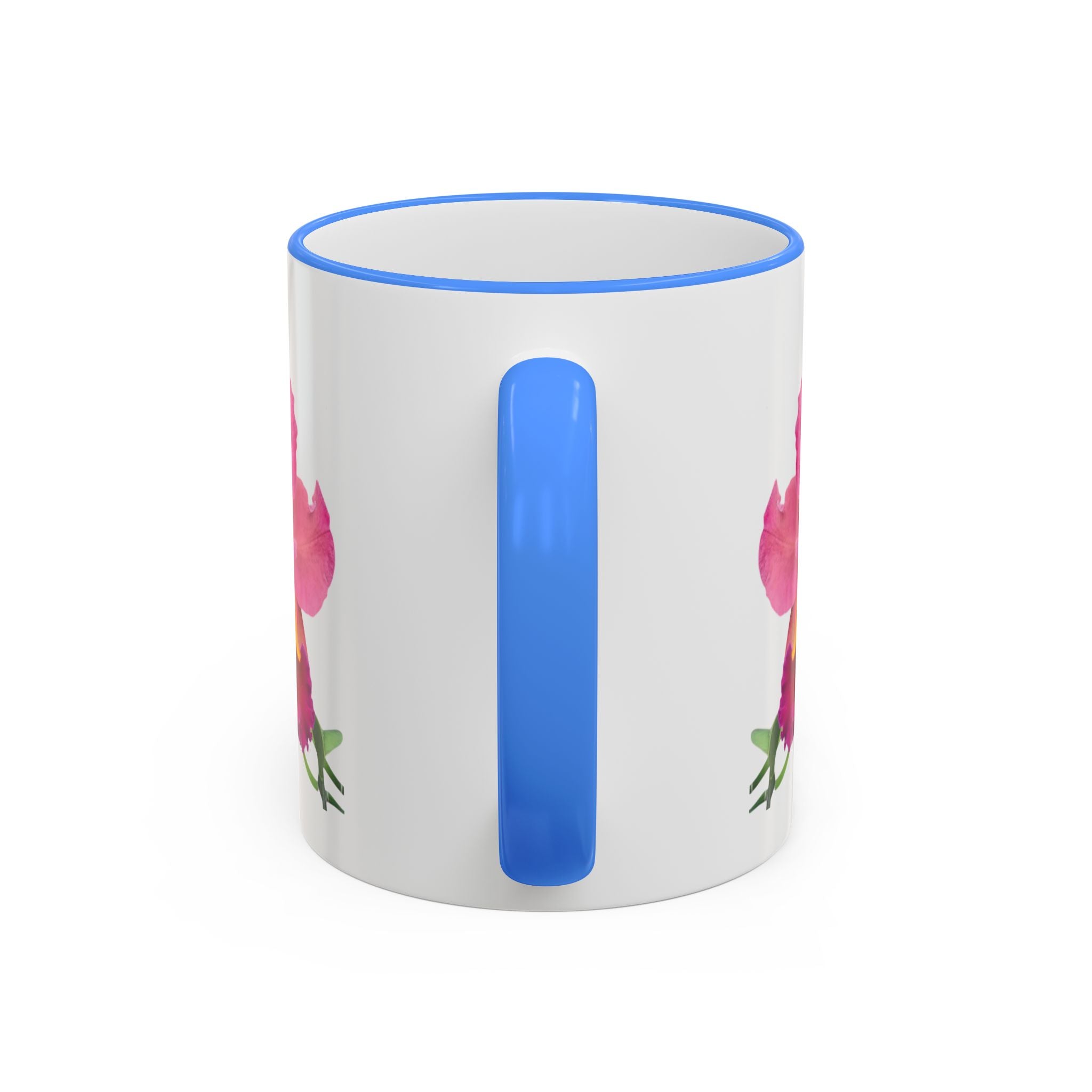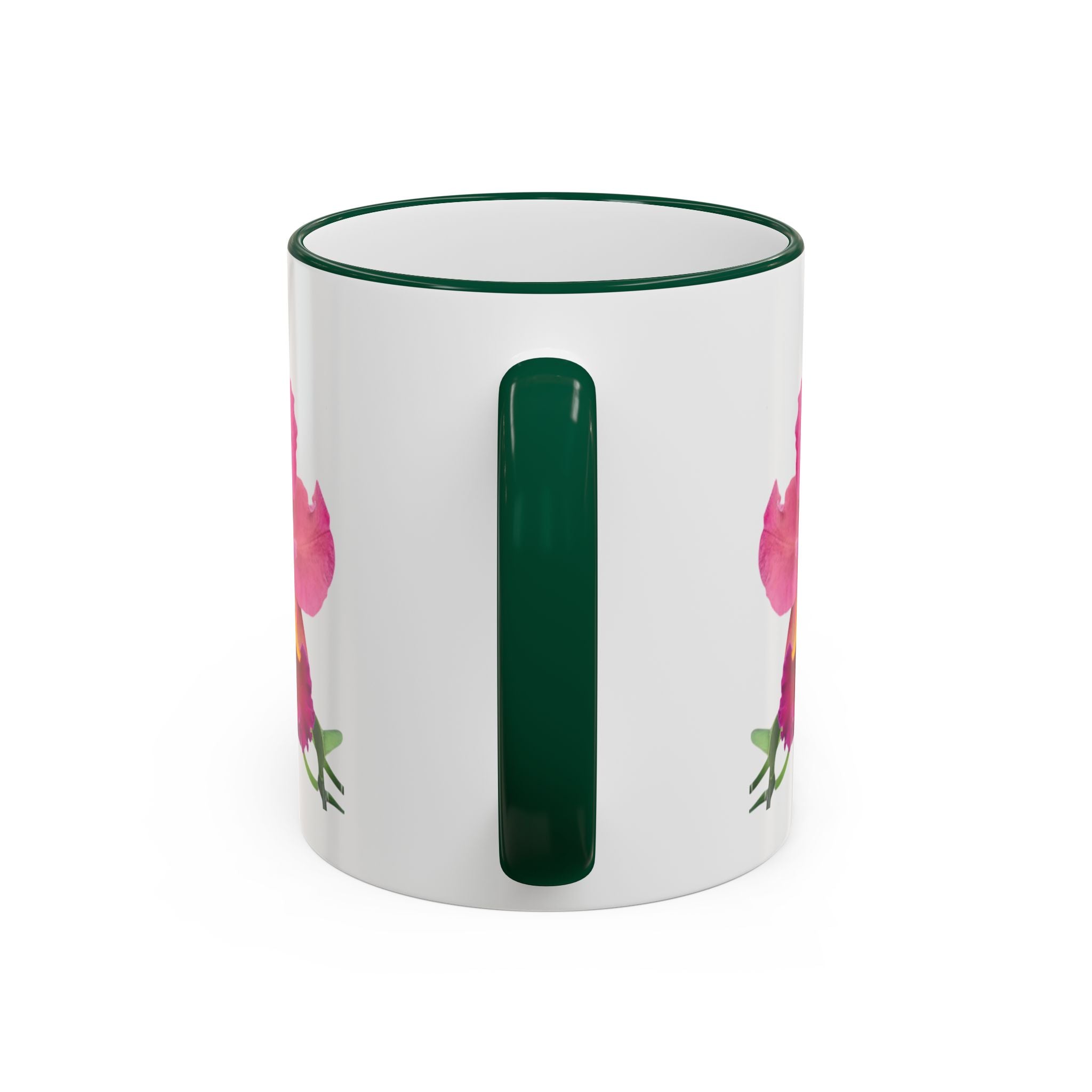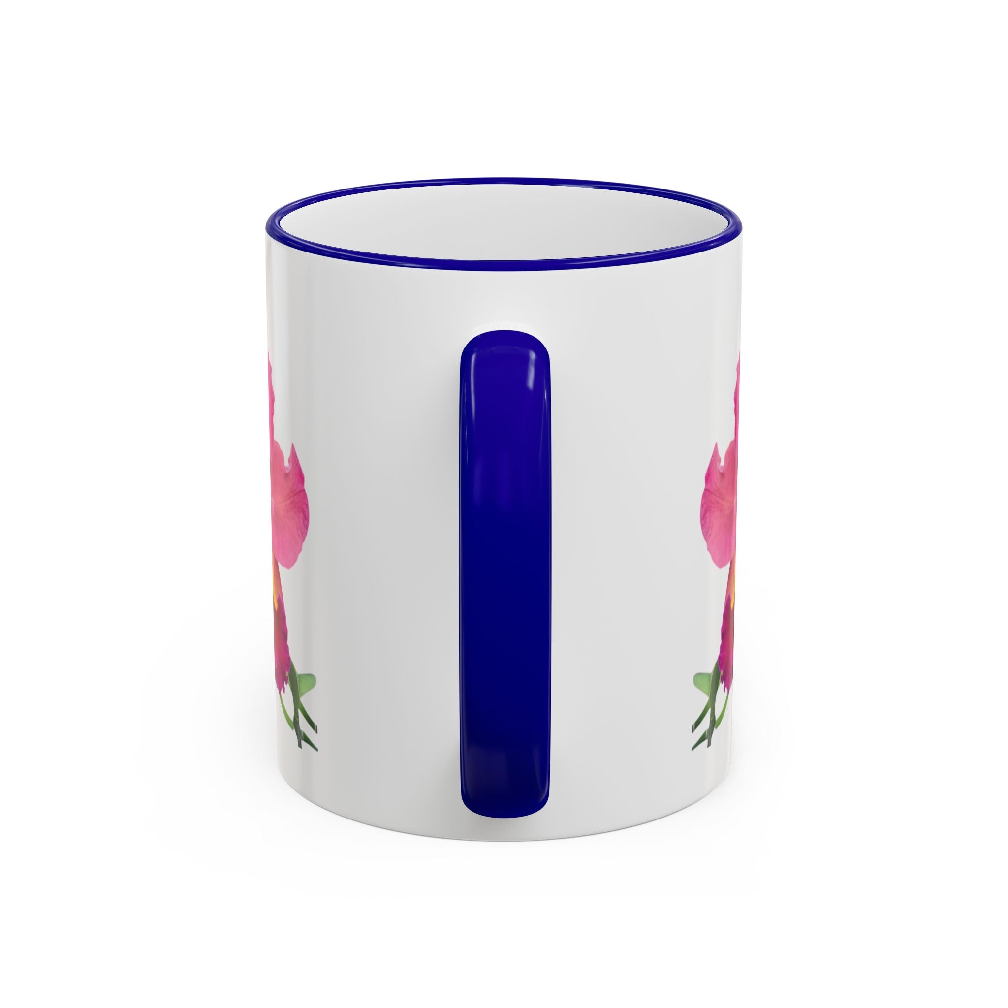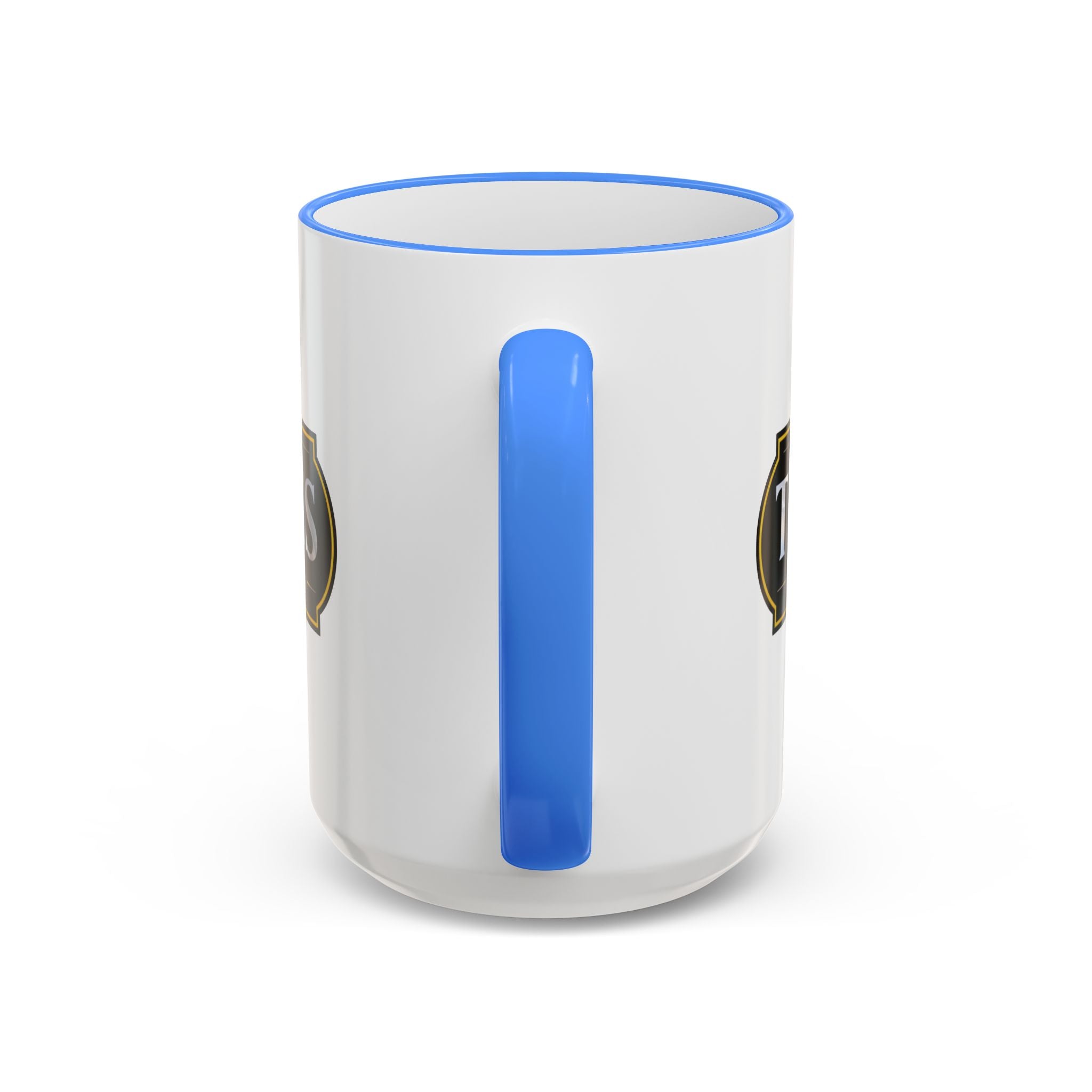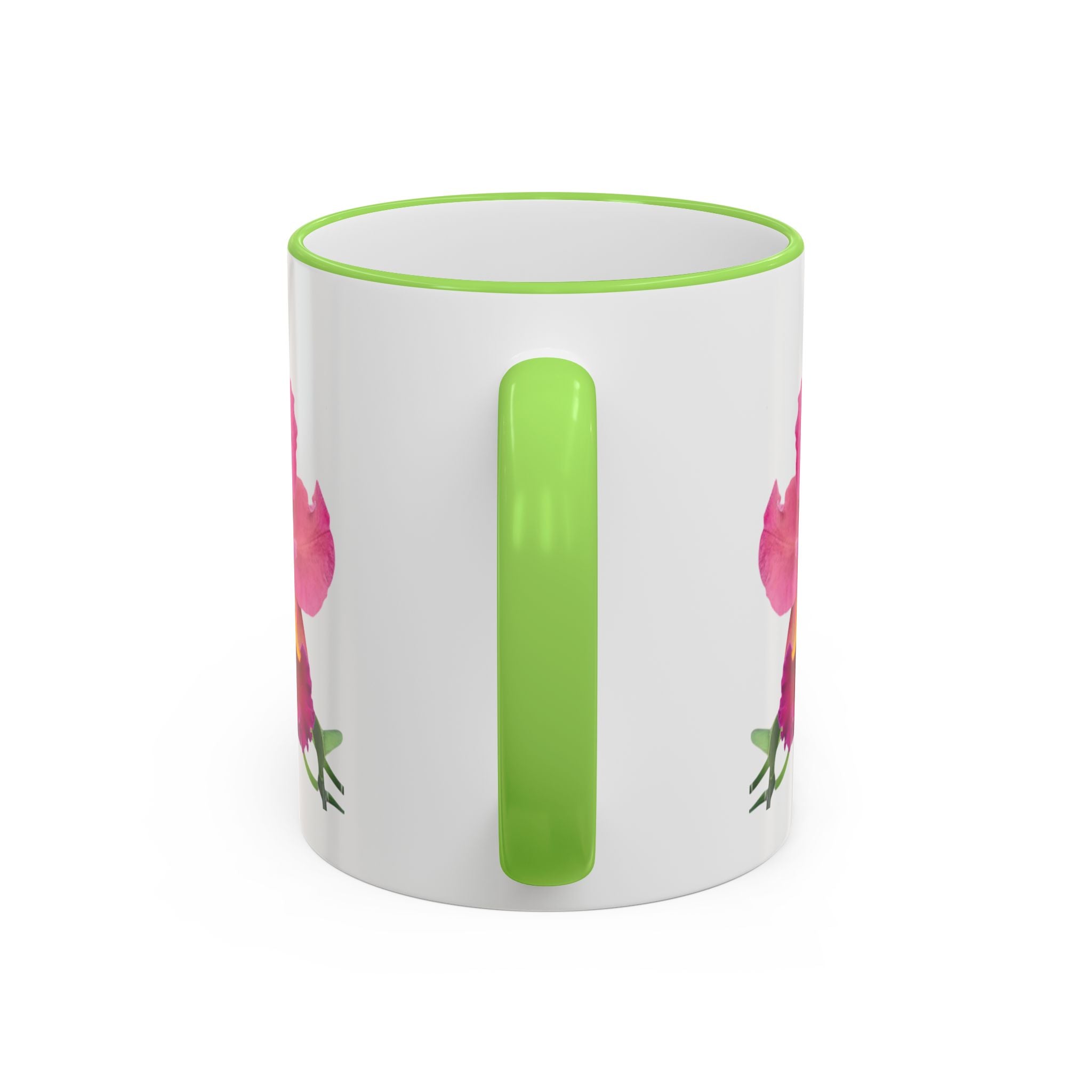 - Available in 11oz and 15oz with C-shaped handle and colored rim