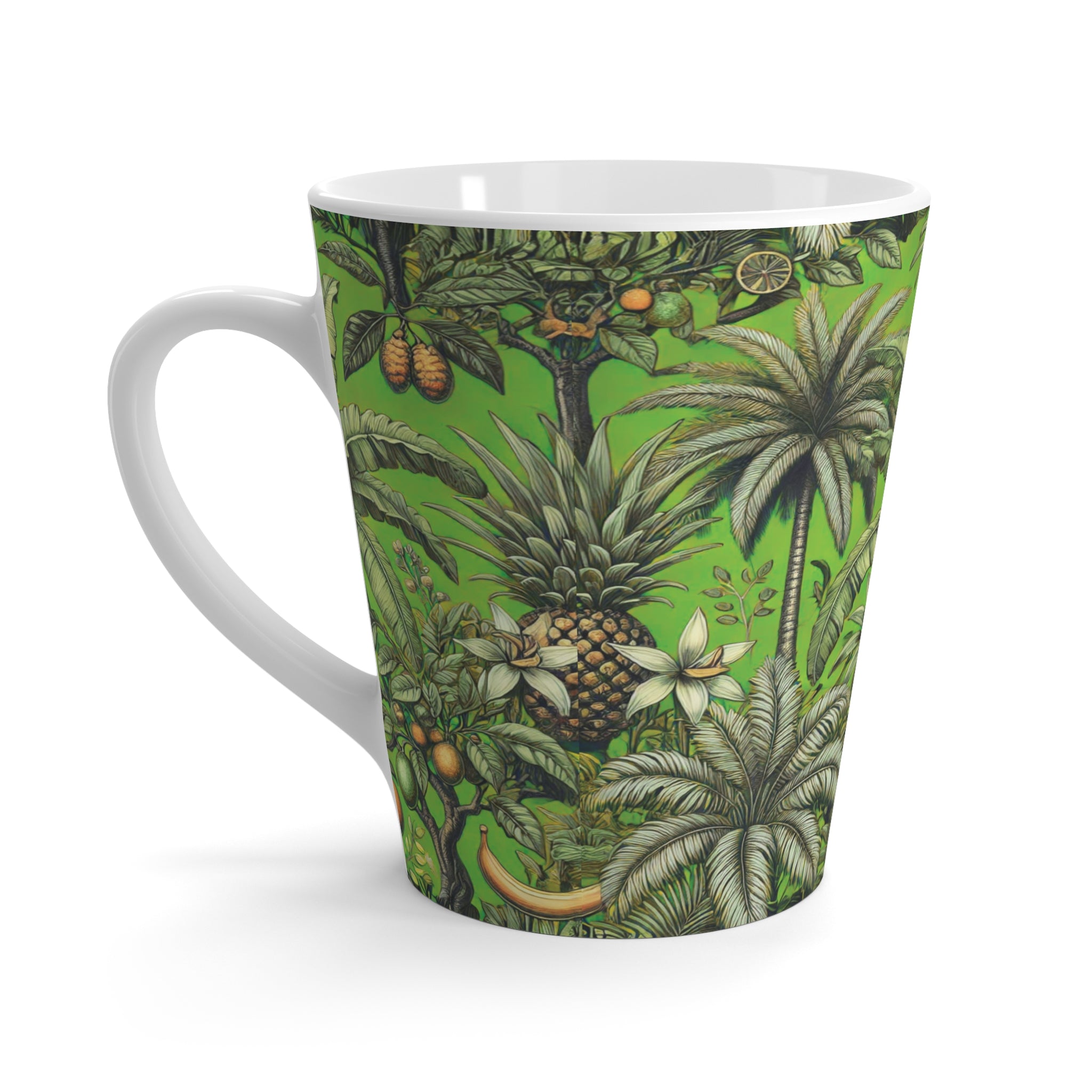 Introducing our vibrant Latte Mug, a delightful addition to your kitchenware collection. Featuring our exclusive rainforest palm trees and fruit design, this colorful mug radiates a fresh, lively tropical vibe that can brighten your mornings and elevate your coffee experience. Perfect for anyone who appreciates nature-inspired aesthetics, this mug is ideal for coffee lovers, tea enthusiasts, or anyone looking to enjoy their favorite beverages in style.
