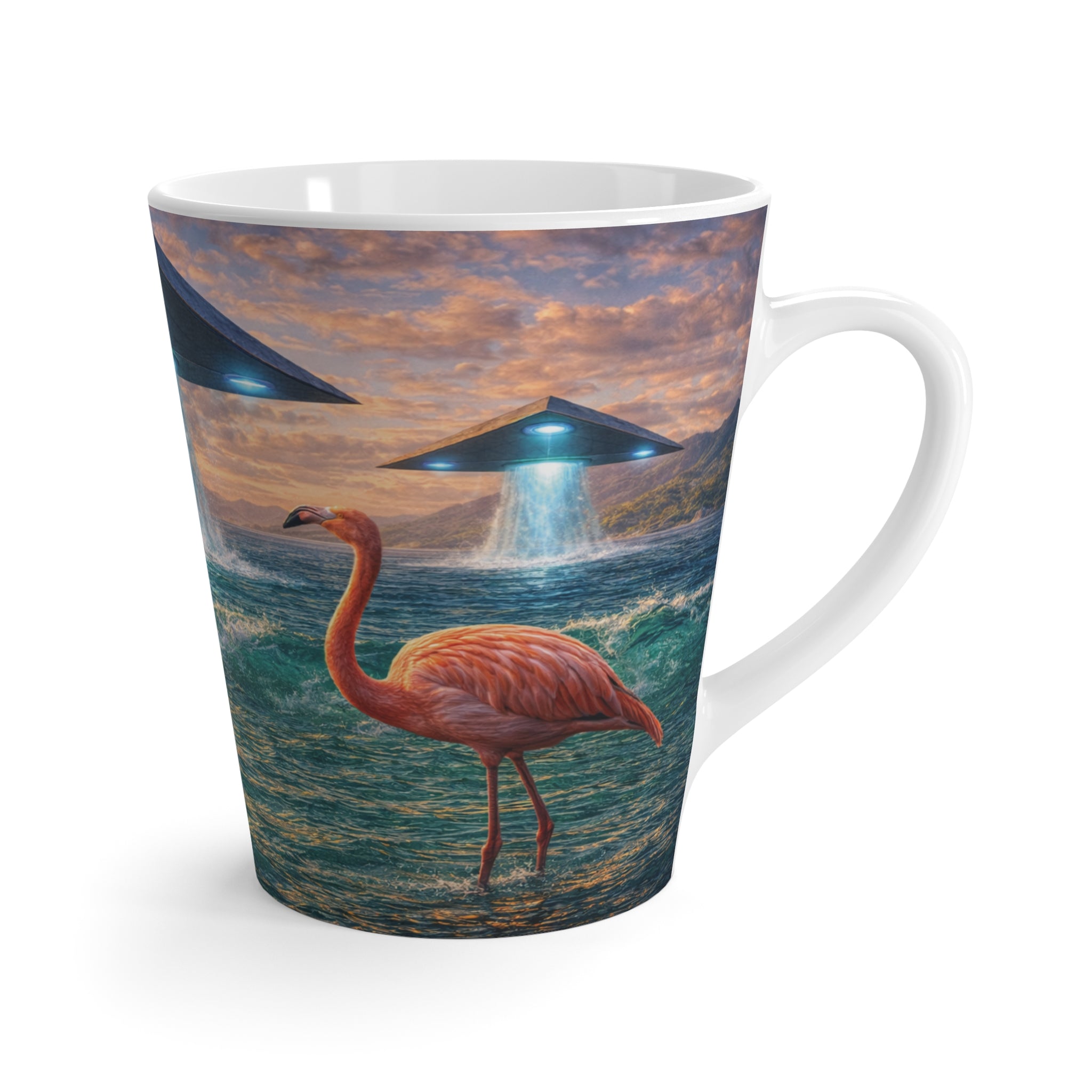 Introducing our vibrant Latte Mug, a delightful addition to your kitchenware collection. Featuring our exclusive UFOs and flock of seasisde flamingos this colorful mug radiates a fresh, lively tropical vibe that can brighten your mornings and elevate your coffee experience. Perfect for anyone who appreciates nature-inspired aesthetics, this mug is ideal for coffee lovers, tea enthusiasts, or anyone looking to enjoy their favorite beverages in style.