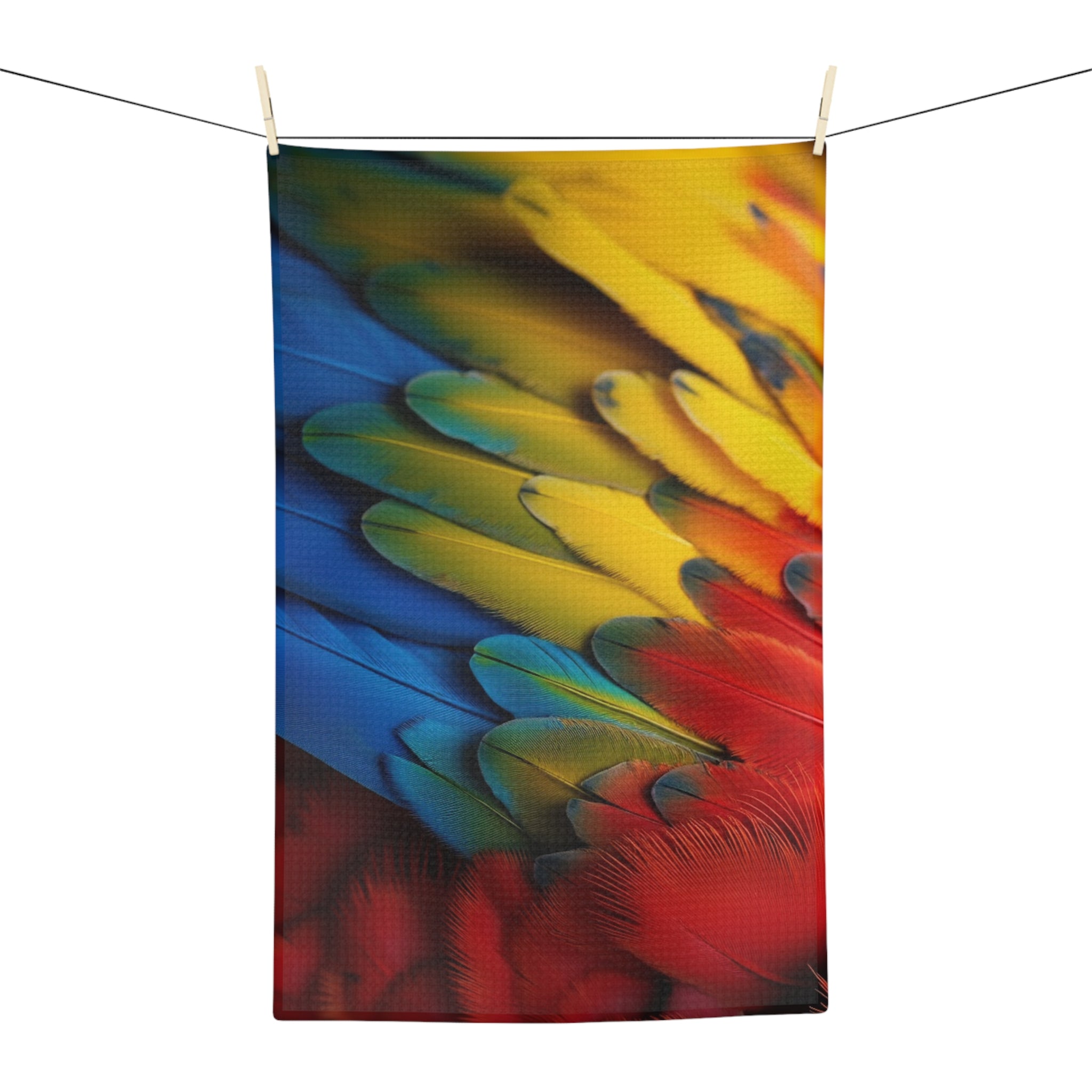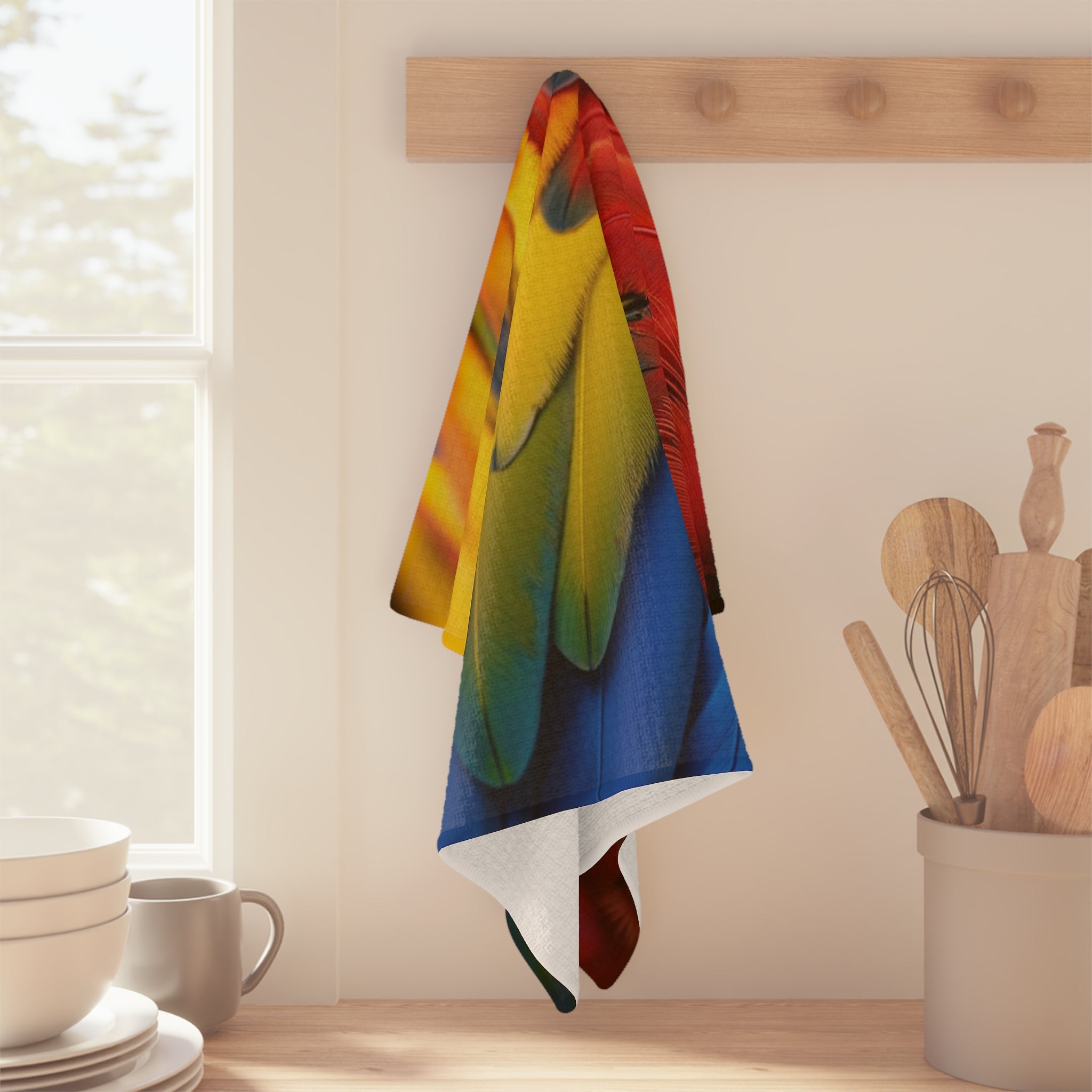 Category: bird kitchen , bright kitchen , colorful towel , eclectic home , gift for bird lover , housewarming gift , kitchen decor , microfiber towel , parrot feathers , rainbow towel , summer kitchen , tea towel , tropical decor
