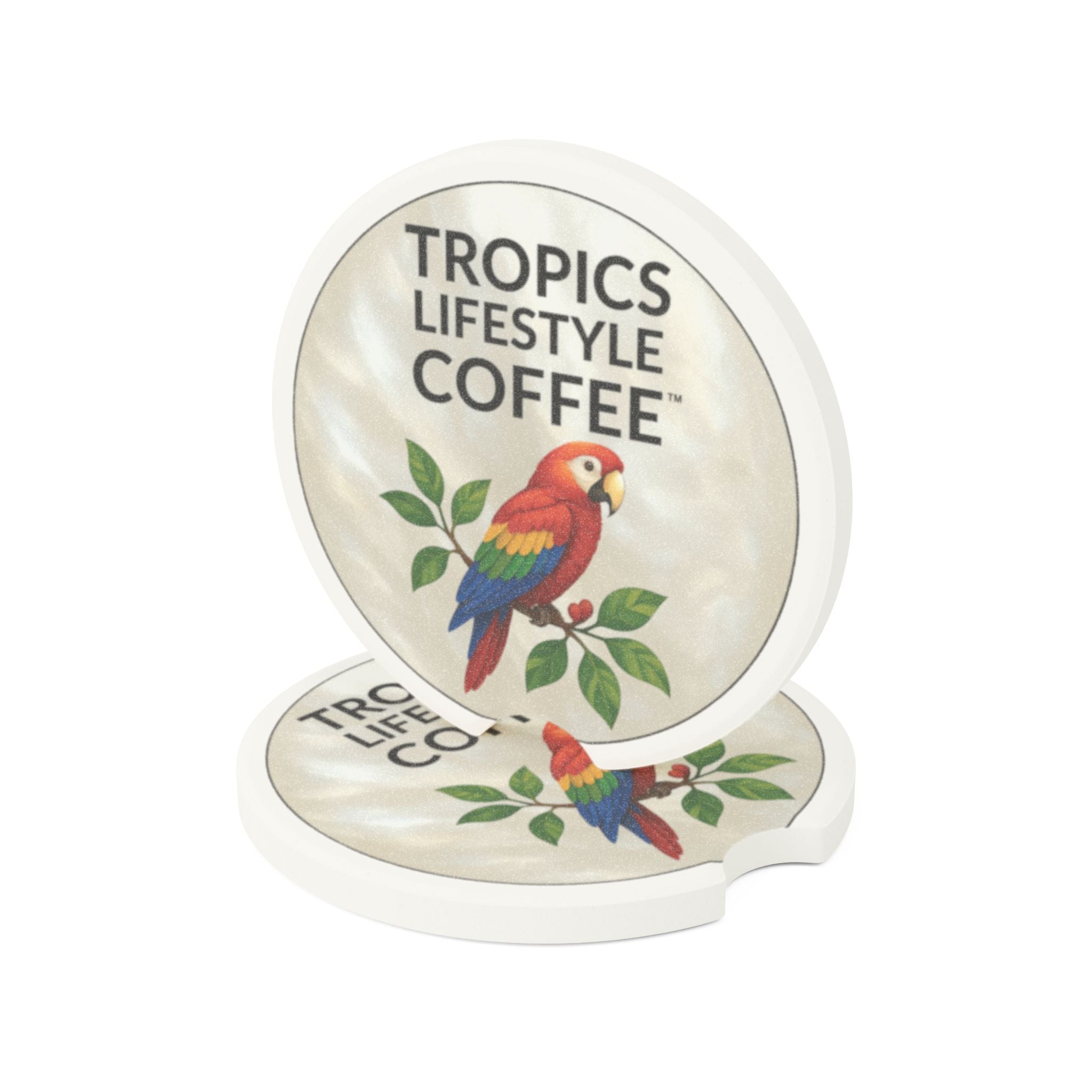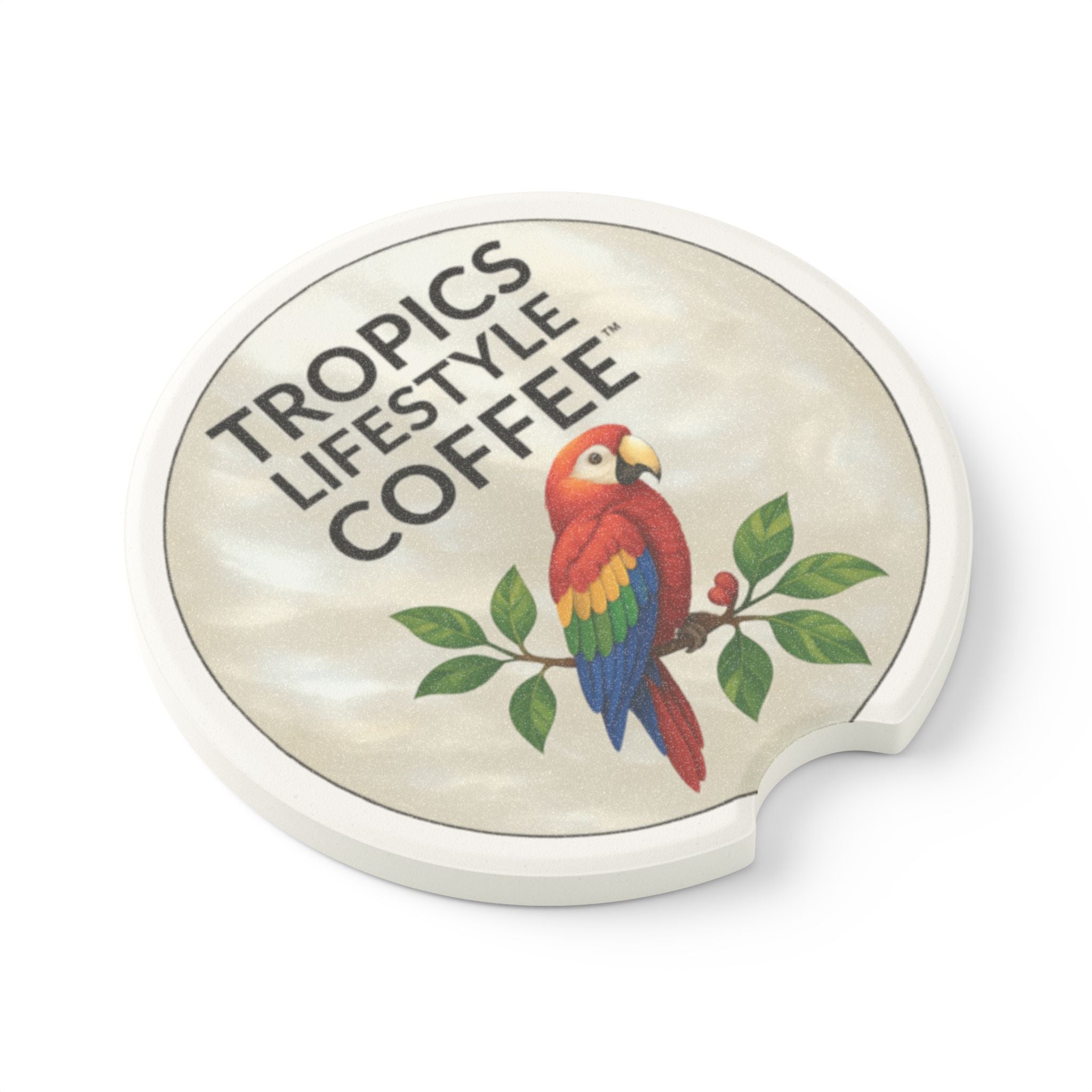 Show fan support and good taste with Tropics Lifestyle Coffee parrot logo coaster. Crafted from highly durable and absorbent soapstone, these car coasters blend custom looks and functionality in one neat package for every car. This must-have car accessory absorbs all moisture from your cold or hot en-route drinks and looks perfect in any car interior. Buy 1, 2 or 4 coasters to match your commuting needs.