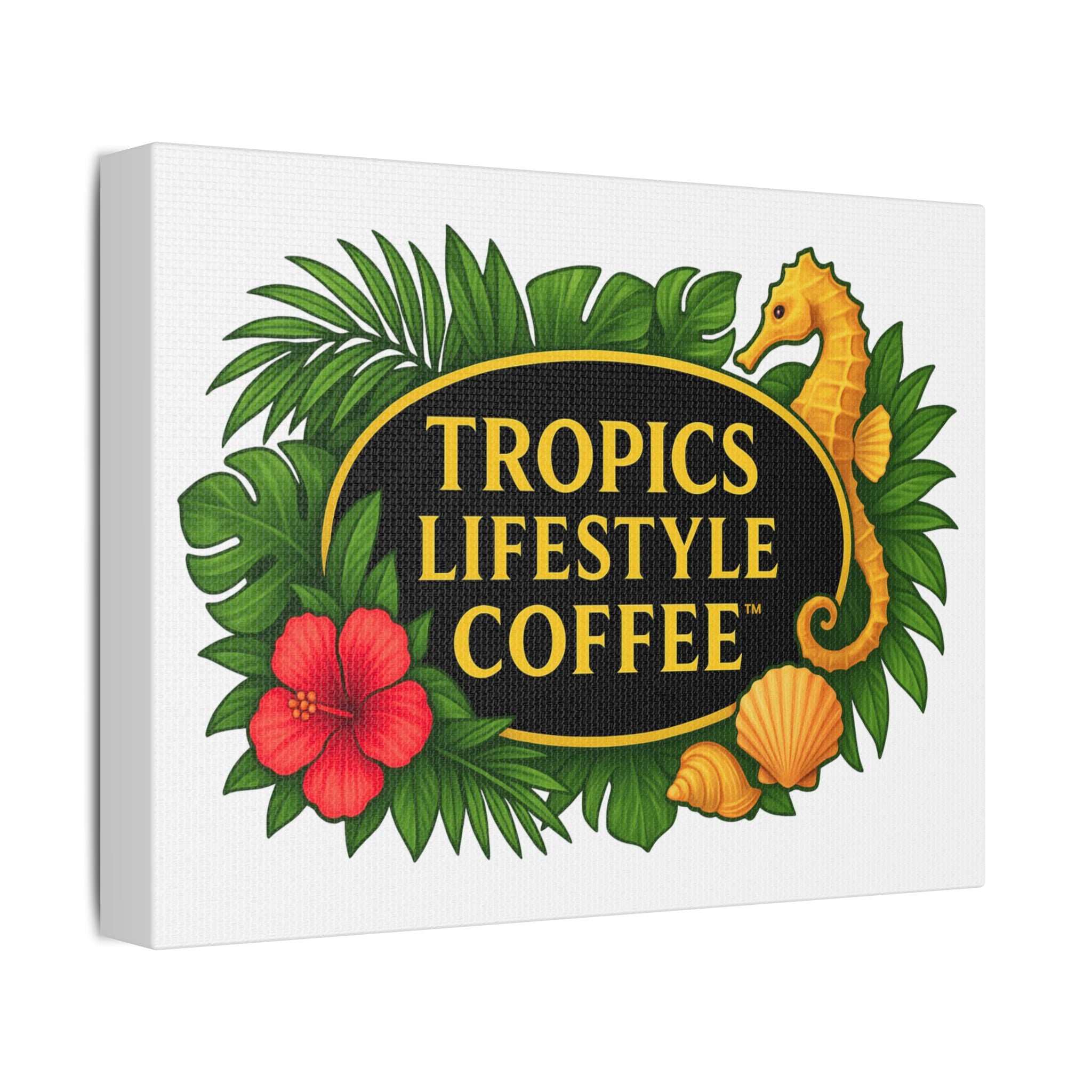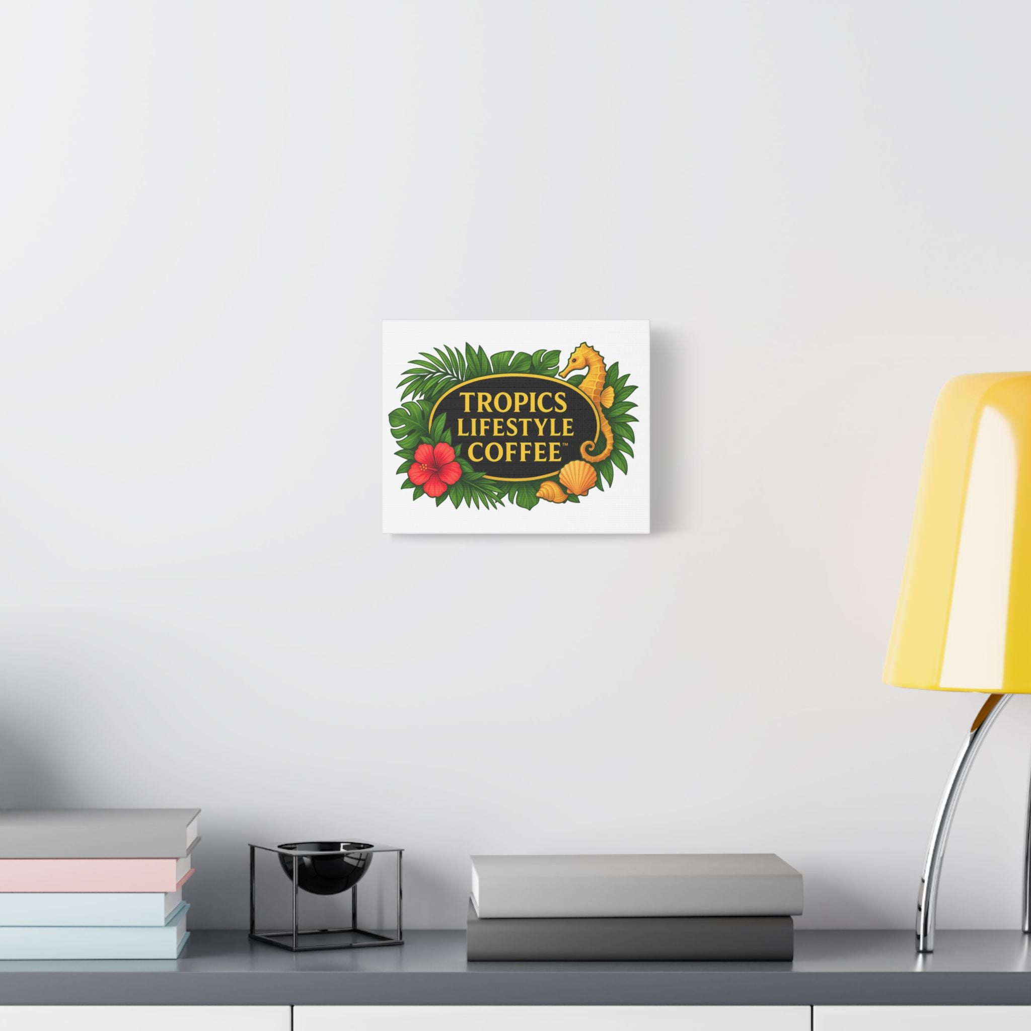 This stretched satin canvas brings a sunny island moment to your walls. A bright image of a yellow seahorse, seashells, tropical hibiscus flowers and lush greenergy gives off tropical vibes for your coffee station or any wall. The satin finish amplifies the color so every nature detail feels alive. Lightweight but rigid on a wooden inner frame, it hangs with metallic mounts for a clean, floating look. Choose from multiple sizes and orientations to fit a cozy nook, nursery, or cheerful living space — a splash of tropical calm that ages gracefully thanks to REACH-certified inks and robust polyester construction.