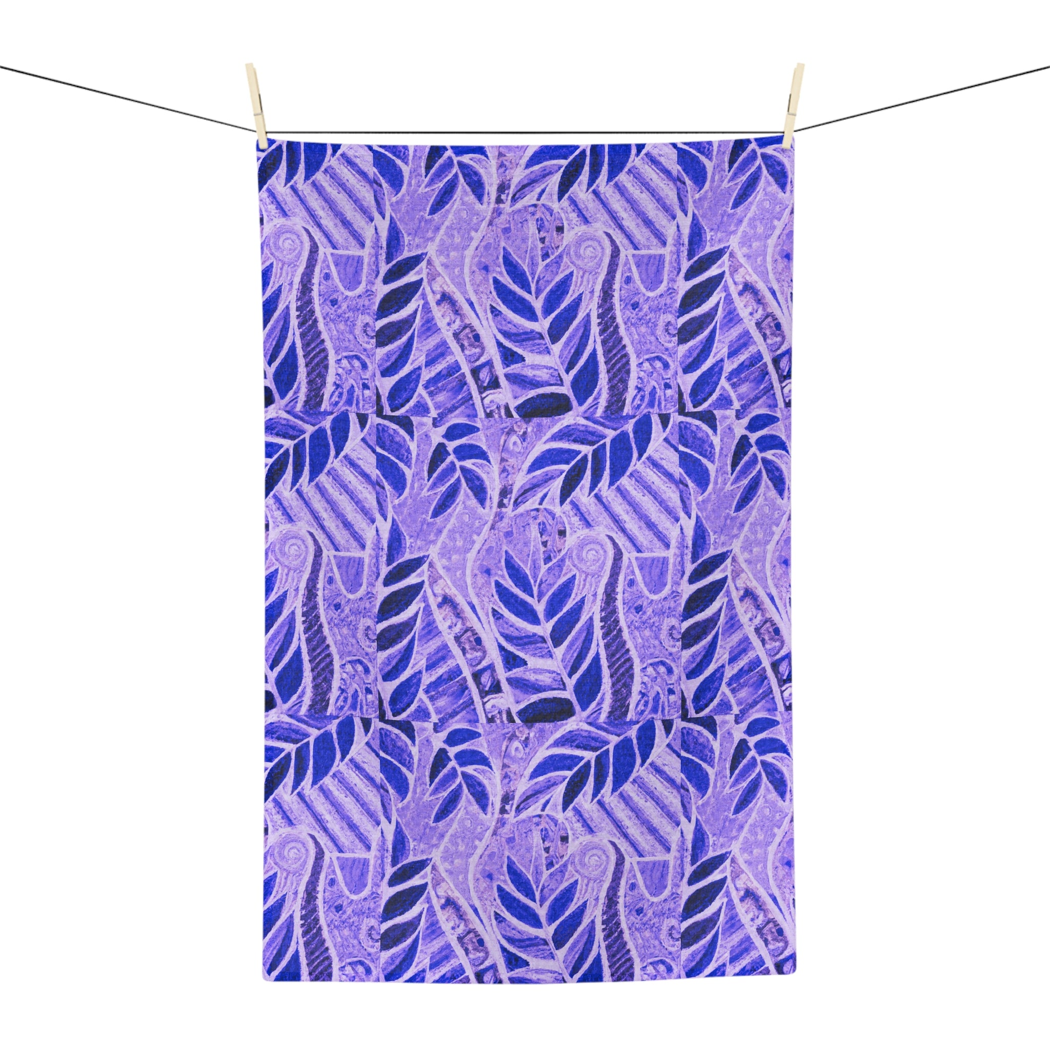 Soft, absorbent, and quietly artistic — this microfiber tea towel brings a calming lavender-and-indigo leaf pattern into everyday kitchen moments. The fine split fibers wick away moisture quickly, so it moves from drying dishes to lining a bread basket without fuss. Hemmed edges and a sewn-in care label keep the towel looking neat through repeated use. The one-sided print showcases layered botanical shapes and textured accents that read like a hand-blocked textile, adding a gentle, crafted touch to morning routines or slow weekend baking. It complements relaxed, cozy kitchens and pairs naturally with ceramic mugs, cast-iron skillets, and small rituals that savor warmth and color.