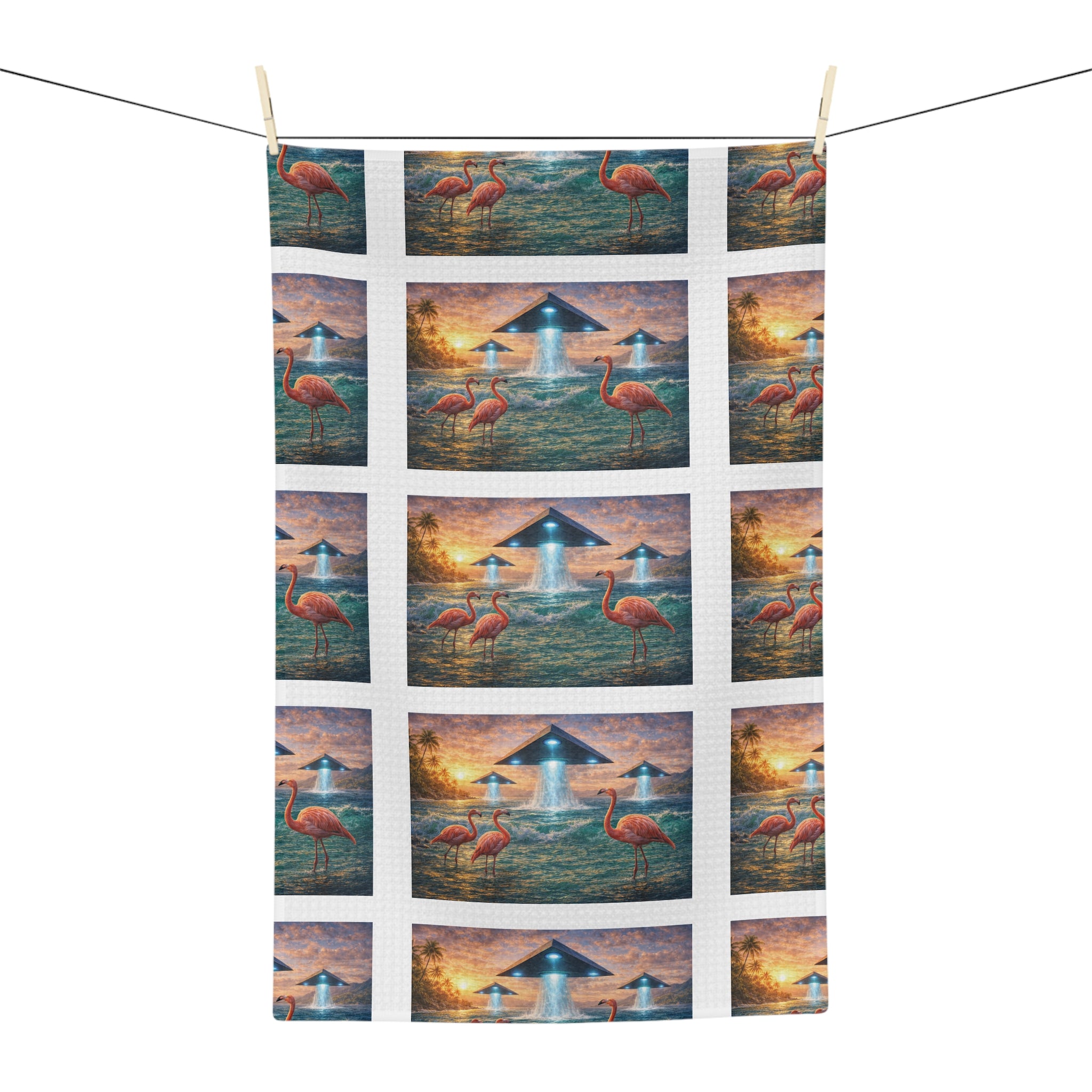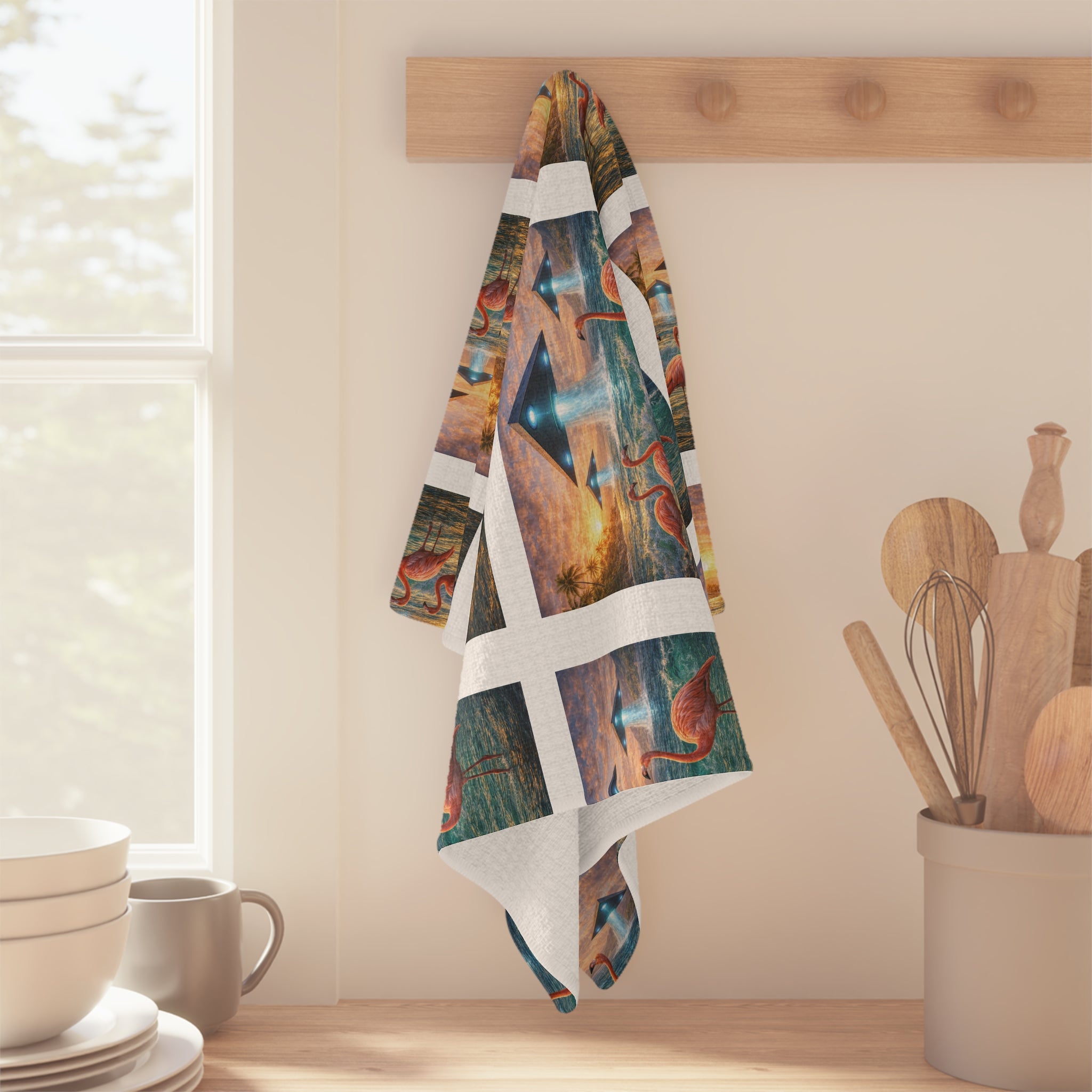 Category: beach tea towel , boho coastal , coastal kitchen , eclectic home , flamingo towel , gifts for her , housewarming gift , microfiber towel , ocean vibe , retro beach art , sea sunset towel , summer kitchen , tropical decor
